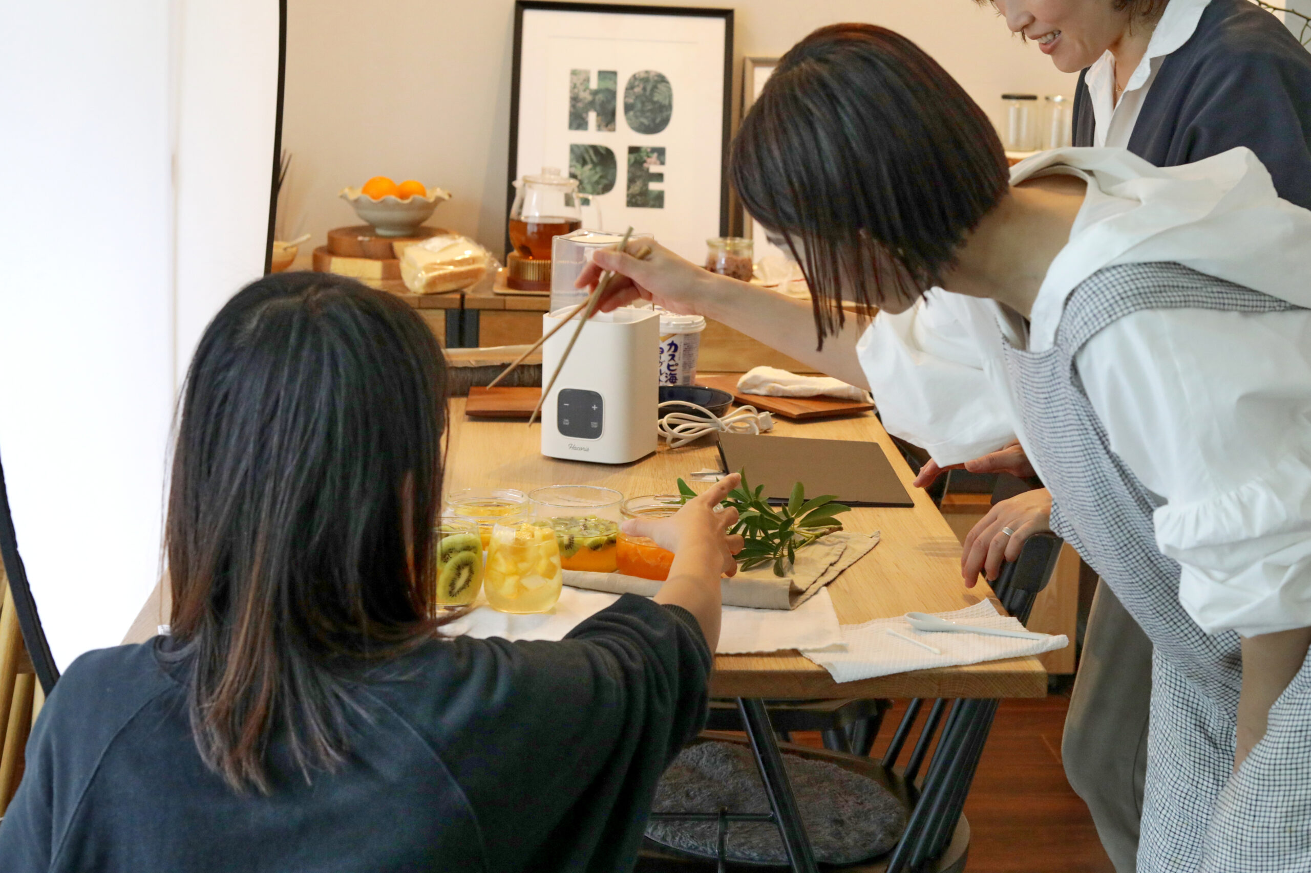 メインを際立たせるシンプルなスタイリングと信楽焼の和食器を要所に取り入れ、ヨーグルトの「冷たい」「洋」の印象に寄らない、手作りの温かさを表現しました。